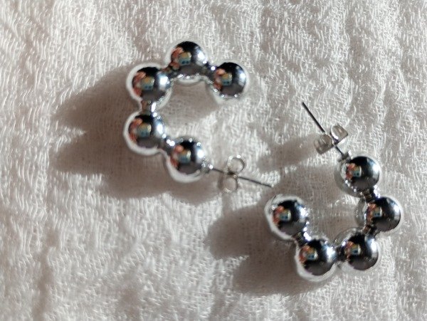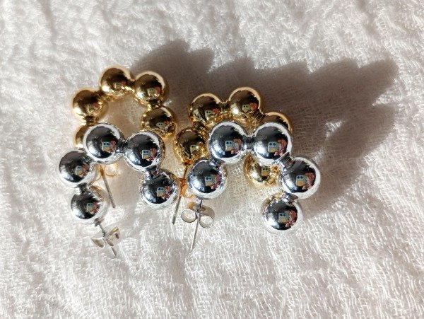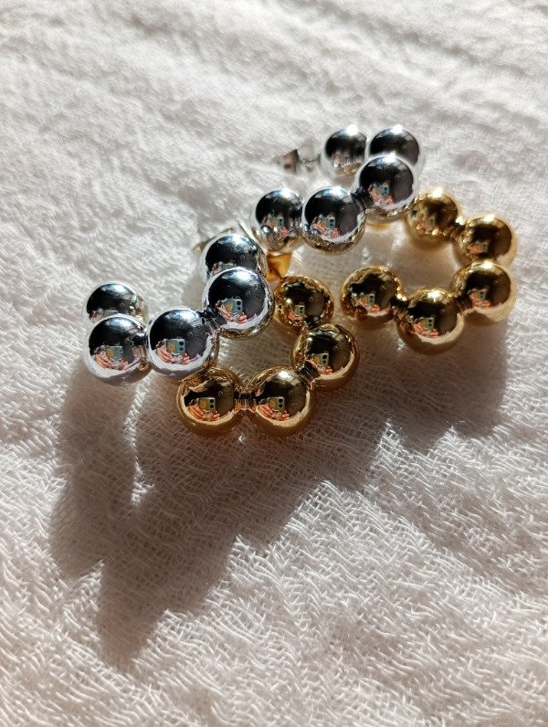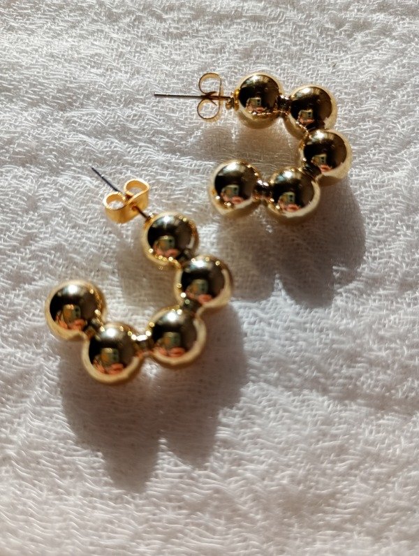 Aros pasantes, de acero quirúrgico blanco o dorado. Miden 2 cm.