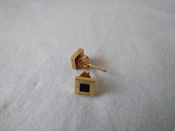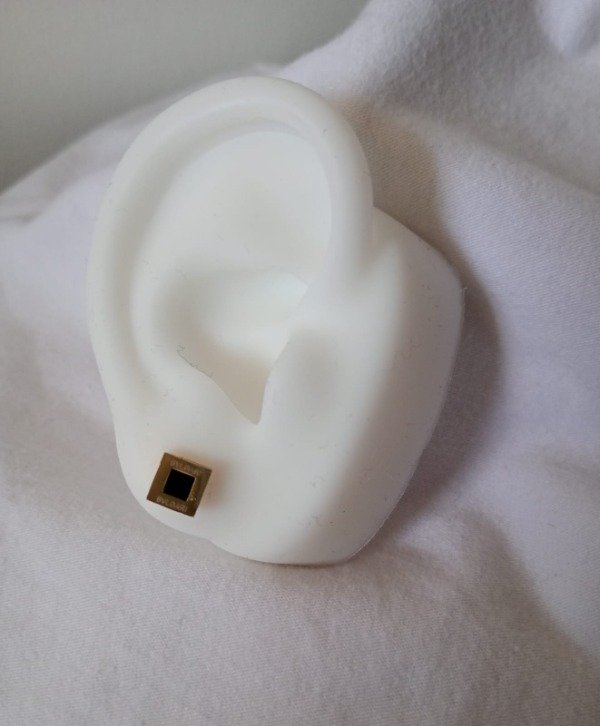 Pasadores de acero dorado, cuadrado de 0,6 CM, con centro negro. Tipo Bulgari.