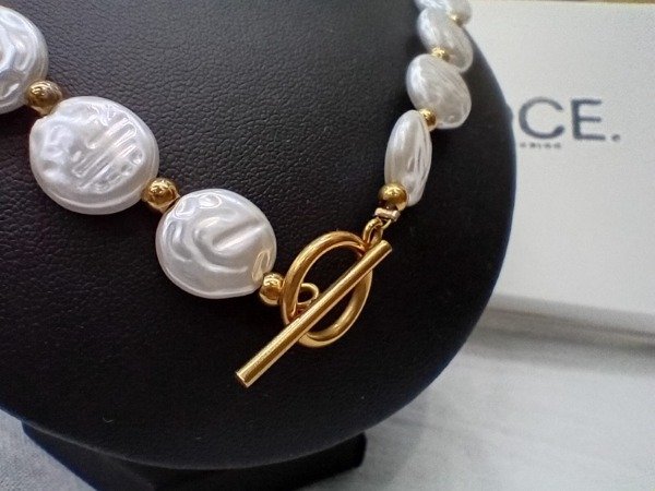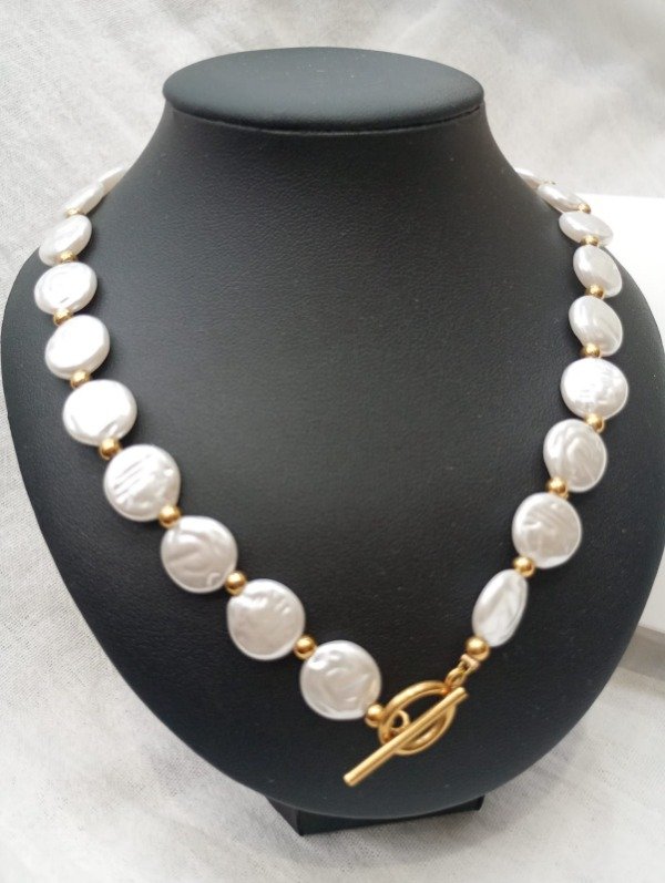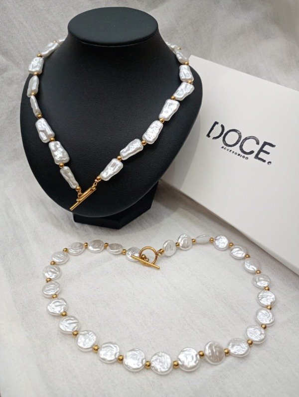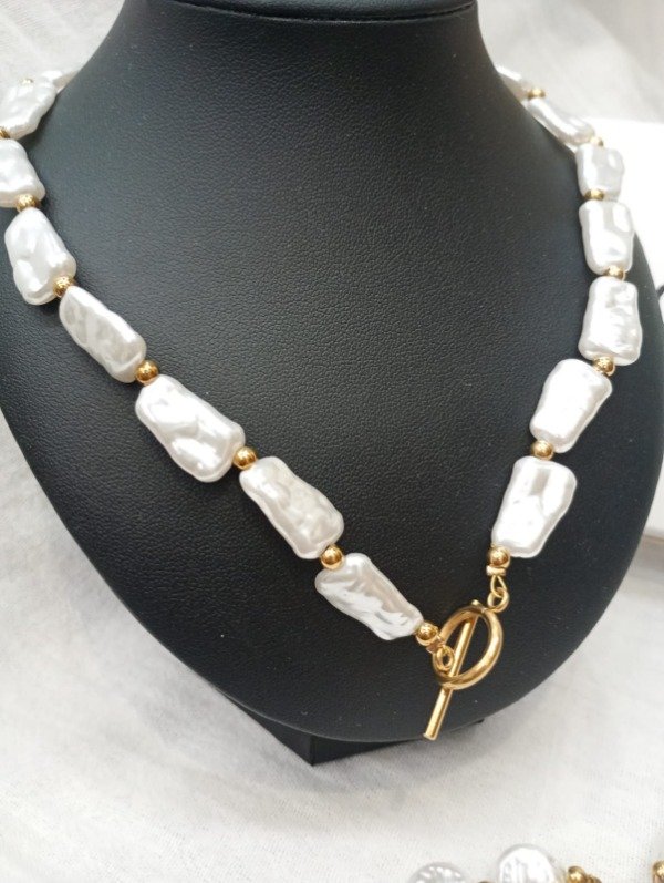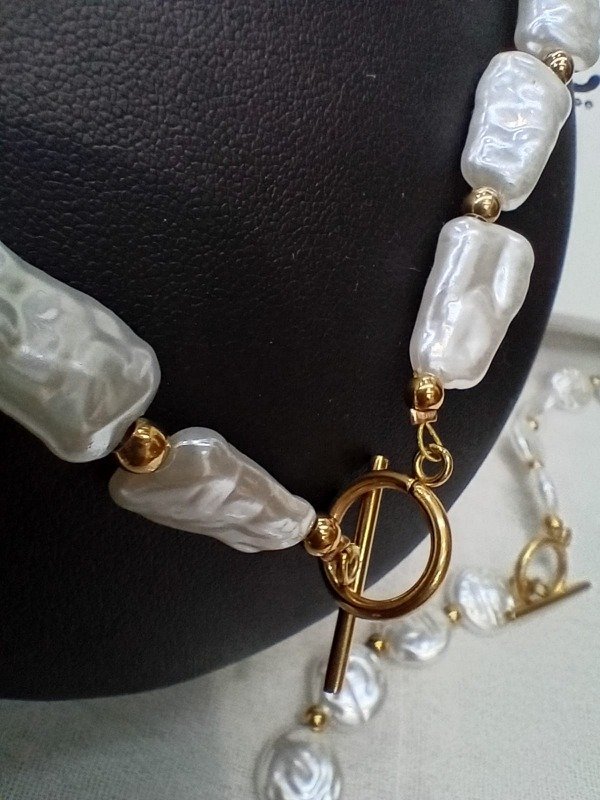 Collar de acero quirúrgico dorado con perlas circulares o de forma irregular.