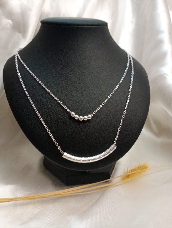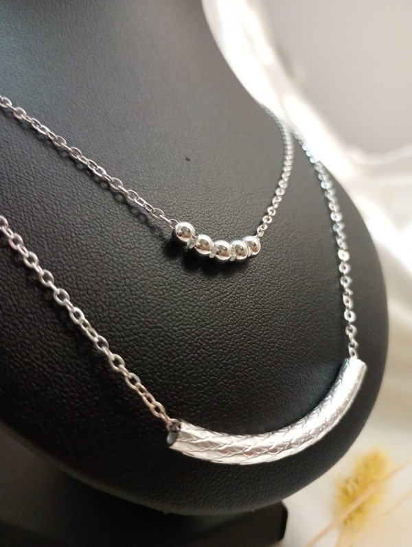 La cadena mide 39 cm y tiene 5 dijes bolita centrales fijos de acero blanco.