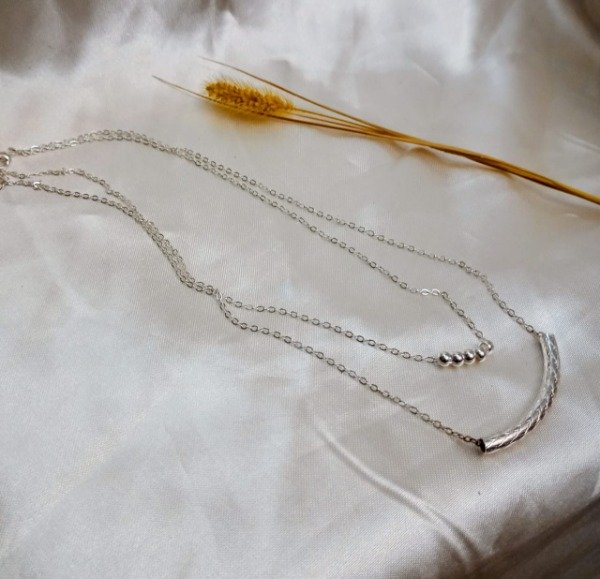 La cadena más larga mide 44 cm y tiene una una barra central fija texturada como dije.
