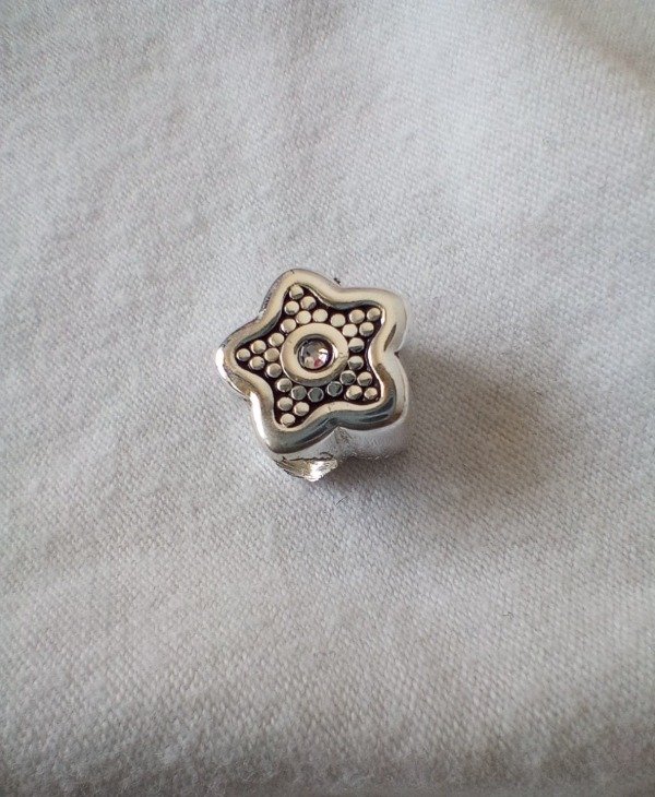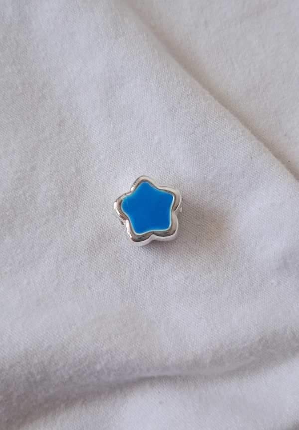 Charm de acero quirúrgico esmaltado de color celeste de un lado y labrado del otro. Mide 1,2 cm. Es apto para la línea esencia y también para otras cadenas y pulseras.