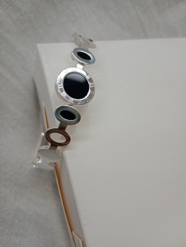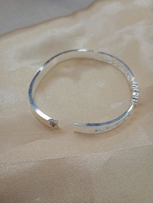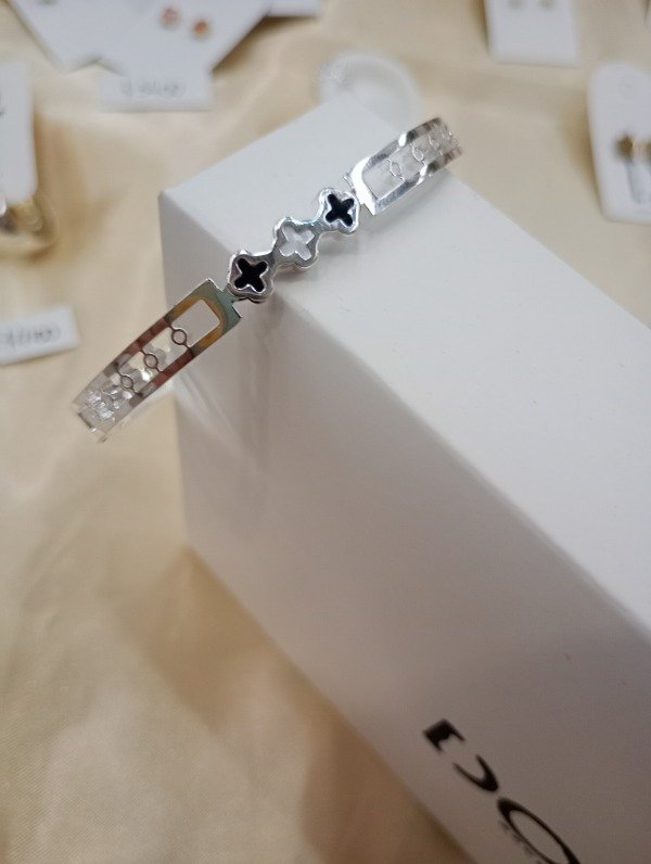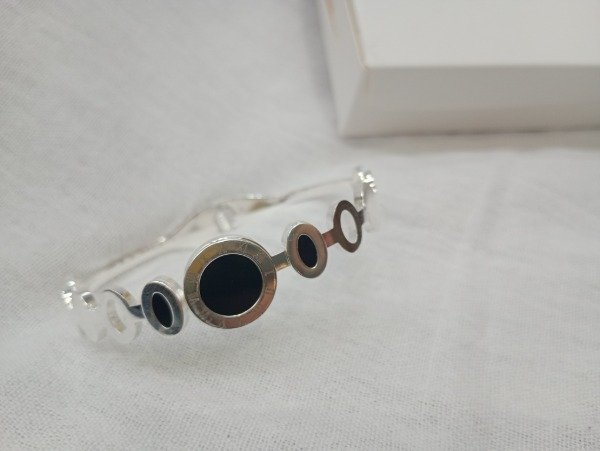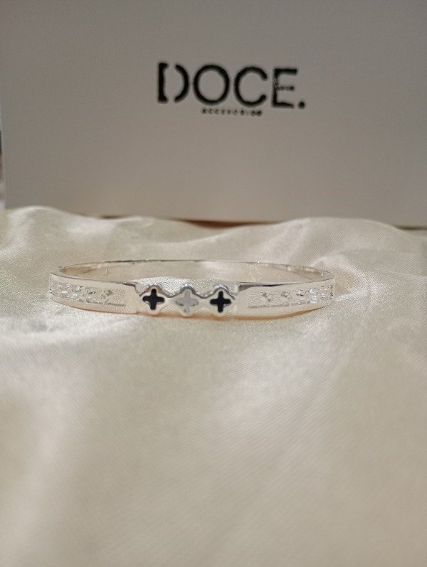 Esclava rígida de acero blanco, con apertura lateral tipo click, o central con bisagra según modelo.